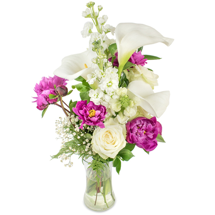 Vibrant Purple Peony & White Calla Lily Floral Arrangement