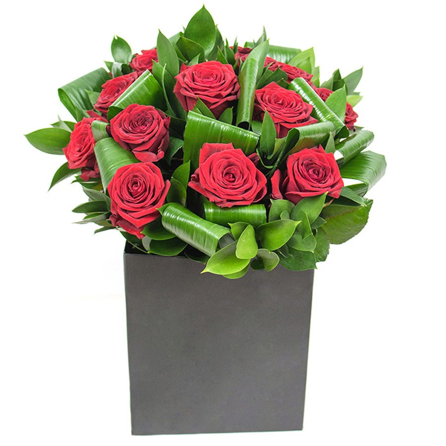 Immerse yourself in the beauty of a bouquet that marries the rich red hues of roses with the delicate greenery of aspidistra leaves and subtle accents of ruscus. Hand-selected for peak freshness, each flower is arranged with a meticulous eye for detail. Delivered in its early bud stage, the bouquet promises 5 days of enduring freshness, allowing you to enjoy watching it gradually bloom and transform.