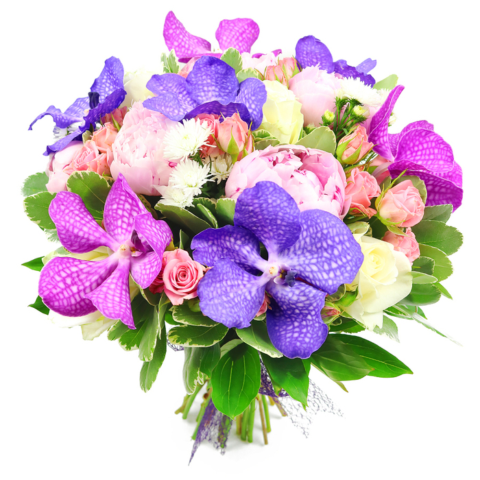 Experience the splendor of our pink and purple vanda bouquet, a perfect blend of beauty and elegance.